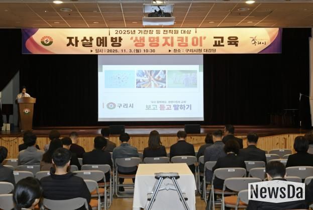 뉴스다 최광묵 기자 | 구리시는 지난 11월 3일 구리시청 대강당에서 시장과 5급 이상 간부 공무원을 비롯한 전 직원을 대상으로'2025년 자살 예방 ‘생명지킴이’ 교육'을 실시했다.