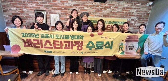 뉴스다 최광묵 기자 | 김포시는 지난 31일 사우동 노후주거지 정비사업(뉴빌리지) 대상지에서 ‘도시재생대학 바리스타 과정’ 수료식을 진행했다.