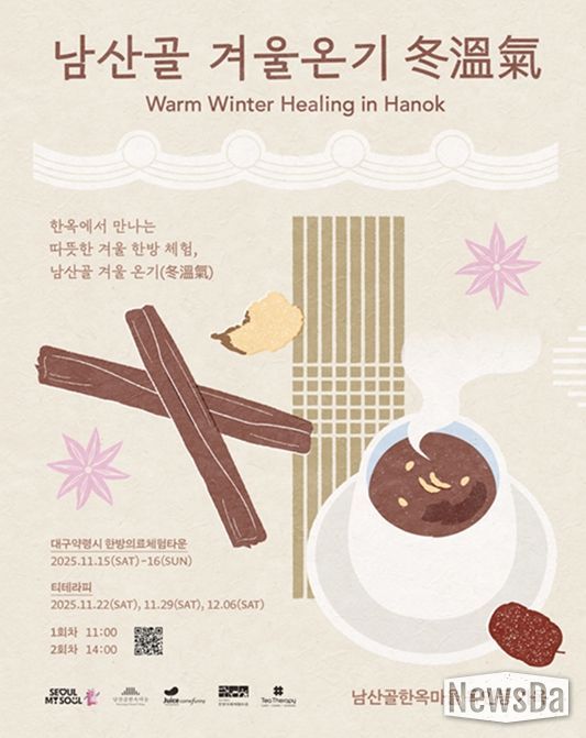 뉴스다 최광묵 기자 | 서울시 전통문화공간 남산골한옥마을은 11월 15일부터 12월 6일까지 겨울 한정 한방 체험 프로그램 ‘2025 남산골 겨울나기 '겨울 온기 동온기(冬溫氣)'’를 개최한다.
