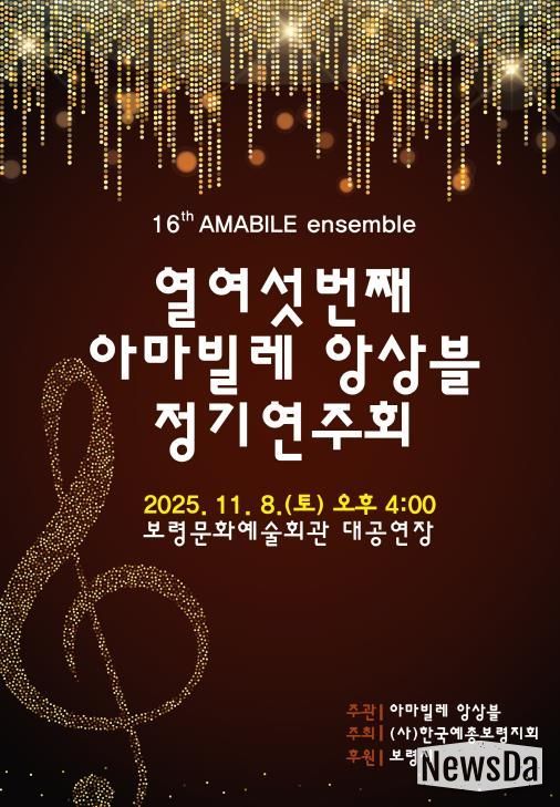 뉴스다 최광묵 기자 | 보령시는 아마빌레 앙상블이 오는 11월 8일 보령문화예술회관 대공연장에서 제16회 정기연주회를 개최한다고 밝혔다.