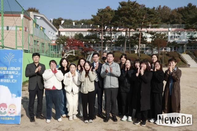 뉴스다 최광묵 기자 | 이상일 용인특례시장이 5일 오전 처인구 원삼면에 있는 두창초등학교를 방문해 학교의 교육환경을 점검하고 학교 교장·교감, 학부모 등과 간담회를 했다.