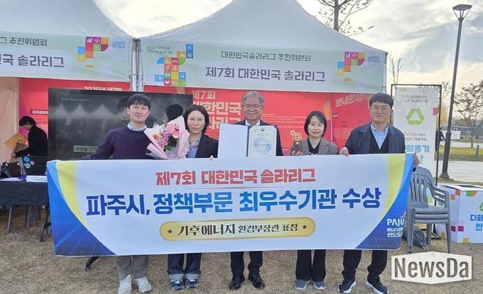뉴스다 최광묵 기자 | 파주시는 ‘제7회 대한민국 솔라리그(케이-솔라리그, K-Solar League)’에서 지자체 정책성과 부문 최우수를 받았다고 밝혔다.