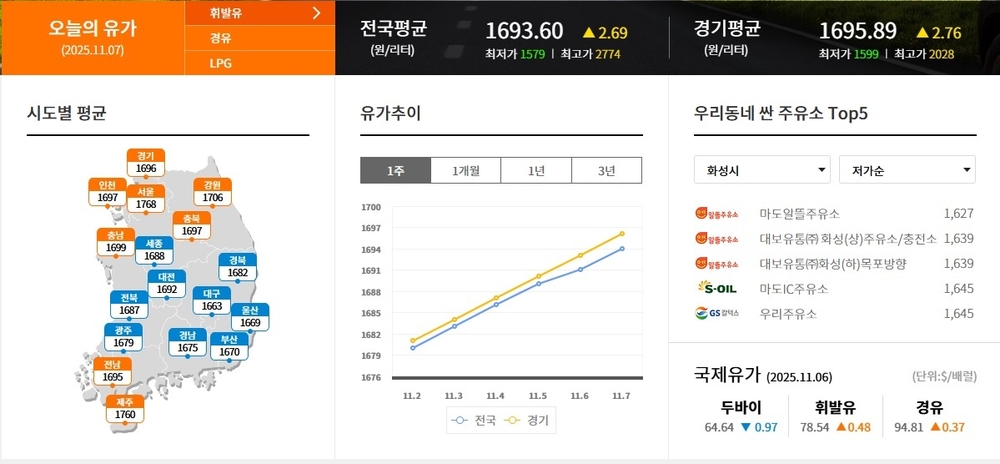 ▲화성시 휘발류 제일 싼 주유소 1627원 마도알뜰 주유소