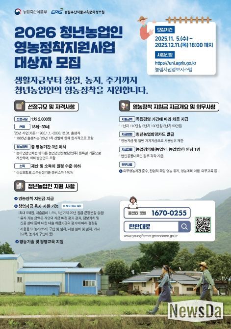 뉴스다 최광묵 기자 | 충남도는 ‘2026년 청년농업인 영농 정착 지원사업’ 1차 모집을 시작했다고 10일 밝혔다.