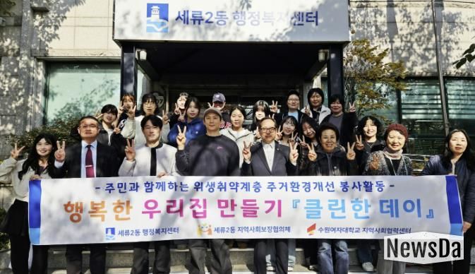 뉴스다 최광묵 기자 | 수원시 권선구 세류2동 행정복지센터는 지난 7일, 세류2동 지역사회보장협의체, 수원여자대학교 지역사회협력센터와 함께 관내 위생취약계층 가정을 방문해 집 청소 봉사활동 『클린한 데이』 사업을 실시했다.
