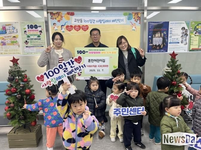 뉴스다 최광묵 기자 | 의정부시 고산동주민센터는 11월 7일 훈민어린이집이 바자회를 통해 모은 수익금 40여만 원을 기탁하며 ‘100일간 사랑릴레이 배턴 잇기’에 동참했다고 밝혔다.