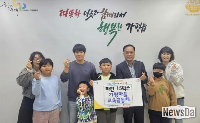 뉴스다 최광묵 기자 | 가평군 가평마을교육공동체는 최근 가평읍 행정복지센터를 방문해 이웃돕기 성품으로 라면 15박스를 전달했다. 이번 성품은 ‘가마공 벼룩시장’에서 아이들이 팀을 이루어 직접 물건을 준비하고 판매에 참여해 얻은 수익금으로 준비한 것이다.