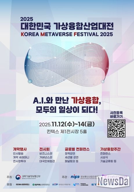 뉴스다 최광묵 기자 | (재)충남콘텐츠진흥원은 오는 11월 12일부터 14일까지 일산 킨텍스에서 열리는 국내 최대 규모의 가상융합산업 전시회 ‘KMF 2025’에 참가한다.