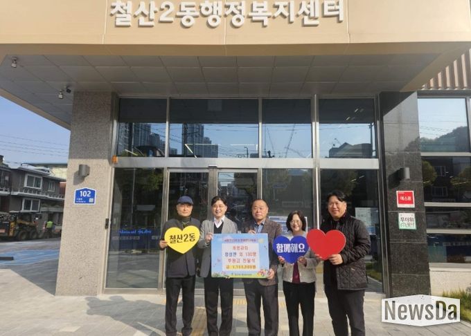 뉴스다 최광묵 기자 | 광명시 철산2동 개명교회는 지난 7일 지역 내 결식아동을 돕기 위해 철산2동 행정복지센터에서 성금 전달식을 가졌다.