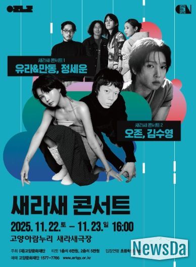 뉴스다 최광묵 기자 | (재)고양문화재단은 소극장 기획공연 시리즈 ‘2025 새라새 ON 시리즈’의 11월 프로그램으로, 감각적인 싱어송라이터들을 만날 수 있는 '새라새 콘서트 1~2'를 11월 22일과 23일 양일간 고양아람누리 새라새극장에서 개최한다.