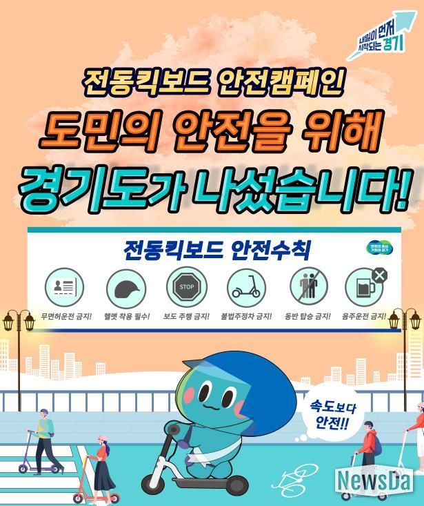 뉴스다 최광묵 기자 | 경기도는 11월 한 달간 경기도의회, 경기도교육청, 경기 남ㆍ북부경찰청, 경기도교통연수원, 한국도로교통공단, 시군 등 유관기관과 함께 전동킥보드 안전문화 합동캠페인을 추진한다.
