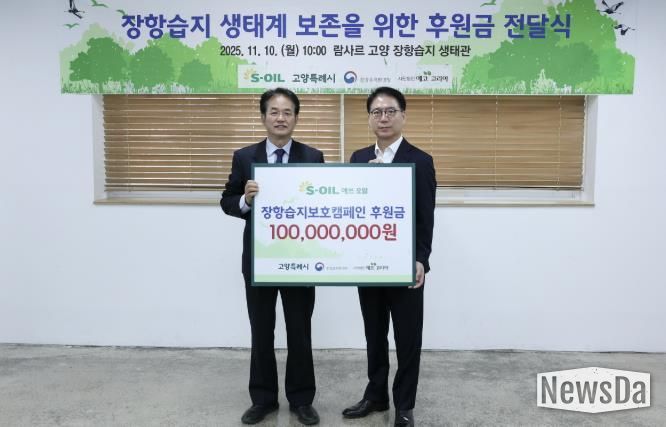 뉴스다 최광묵 기자 | 고양특례시는 지난 10일 일산서구 장항동에 위치한 람사르 고양 장항습지생태관에서‘장항습지 생태계 보전을 위한 에쓰오일(S-OIL) 후원금 전달식’을 개최했다고 밝혔다.
