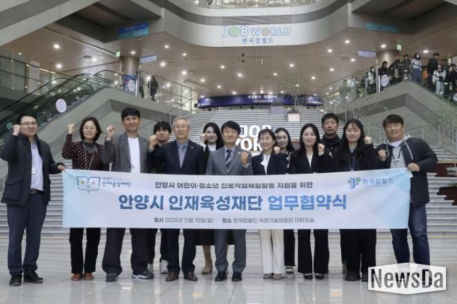뉴스다 최광묵 기자 | 안양시 인재육성재단은 10일 한국잡월드 숙련기술체험관 대회의실에서 직업진로체험 대표기관인 한국잡월드와 업무협약을 체결했다고 11일 밝혔다. 이번 협약은 안양시 어린이·청소년의 다양한 진로·직업체험 및 교육지원을 위해 양 기관이 상호협력을 강화하고자 추진됐다.