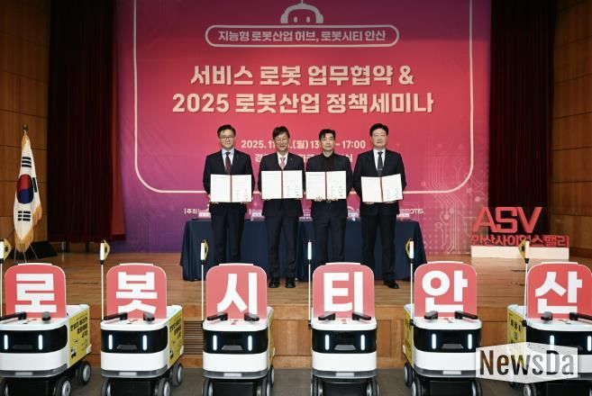 뉴스다 최광묵 기자 | 안산시는 지난 10일 (재)경기테크노파크 다목적실에서 관내 기업들과 ‘서비스로봇 업무협약·안산시 로봇산업 정책세미나’를 개최하고, 국내 최초로 캠퍼스형 자율주행 배달로봇 ‘개미’를 도입한다고 11일 밝혔다.