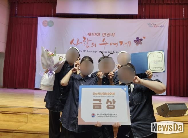 뉴스다 최광묵 기자 | 의왕시청소년재단 산하 의왕시학교밖청소년지원센터의 수어 동아리 ‘수어노바’가 11월 8일 안산시수어통역센터에서 주최한 제19회 안산시사랑의수어제에서 금상을 수상했다.