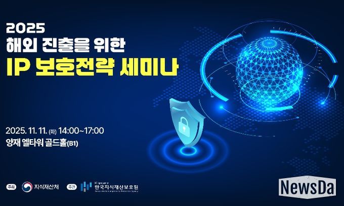 뉴스다 최광묵 기자 | 지식재산처는 11월 11일 14시, 엘타워(서울시 서초구)에서 ‘2025 해외진출을 위한 지식재산 보호전략 발표회’를 개최한다고 밝혔다.
