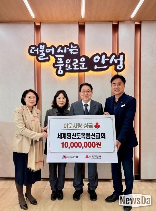 뉴스다 최광묵 기자 | 안성시는 지난 10일 세계평신도복음선교회로부터 현금 1천만원을 지정기부금으로 전달받았다고 밝혔다.