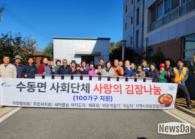 이날 마련된 김치 100통은 수동면 관내 독거노인, 장애인, 복지사각지대에 놓인 저소득층 가정 등에 전달됐다. 특히 각 사회단체별로 회원들이 김장 김치를 직접 전달하며 이웃의 안부를 살폈다.