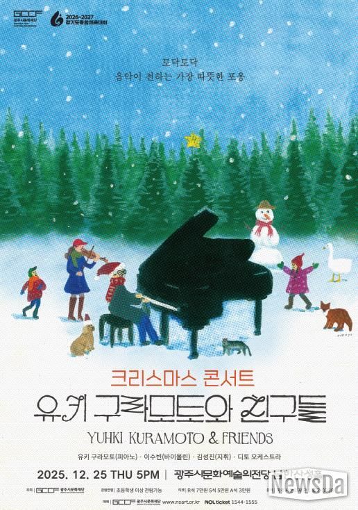 뉴스다 최광묵 기자 | (재)광주시문화재단은 오는 12월 25일 오후 5시, 광주시문화예술의전당 남한산성홀에서 ‘2025 크리스마스 콘서트 '유키 구라모토와 친구들'을 개최한다.