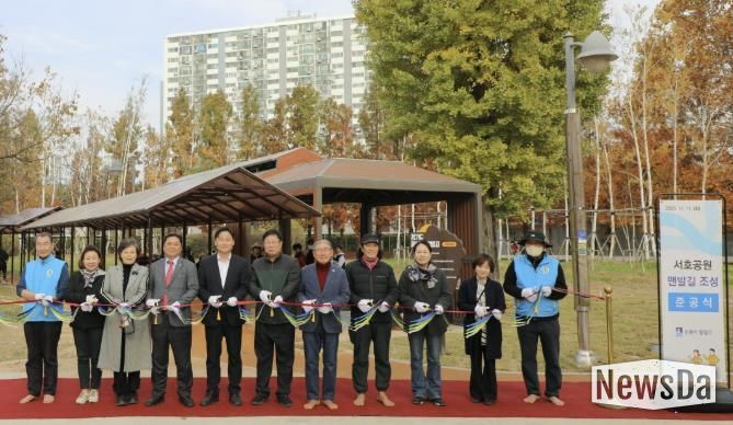 뉴스다 최광묵 기자 | 수원시 팔달구는 지난 11월 11일 서호공원 맨발걷기길 조성사업 준공식을 개최했다.