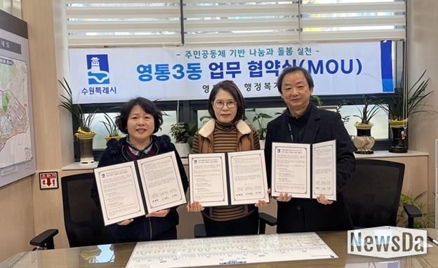 뉴스다 최광묵 기자 | 수원시 영통3동 지역사회보장협의체는 11월 11일, 영통3동 행정복지센터에서 ‘꿈 더하기 장학금’ 협력사업 협약식을 열고, 저소득 가구 자녀를 대상으로 정기적인 장학금 지원을 위한 민·관 협력 체계를 구축했다.
