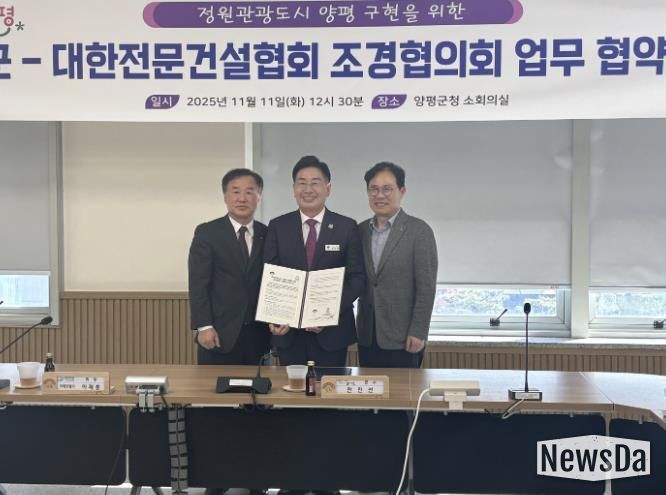 뉴스다 최광묵 기자 | 양평군은 지난 11일 군청 회의실에서 대한전문건설협회 조경식재·시설물공사업협의회와 ‘정원관광도시 양평 구현을 위한 조경분야 상생협력 협약식’을 개최했다.