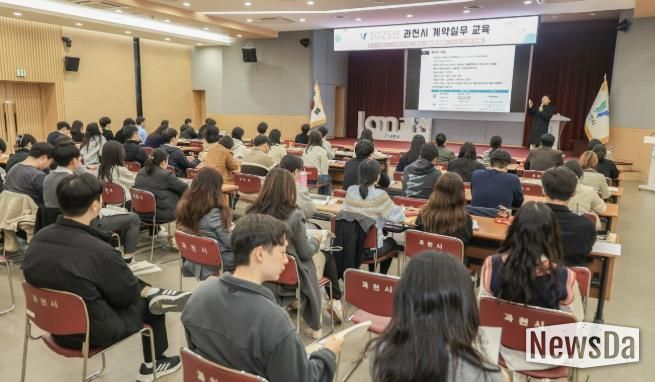 뉴스다 최광묵 기자 | 과천시는 지난 11일, 시청 대강당에서 신규 임용 공무원과 시청 및 출연‧산하기관 계약 담당자 등 100여 명이 참석한 가운데 ‘2025년 지방계약 실무교육’을 진행했다.