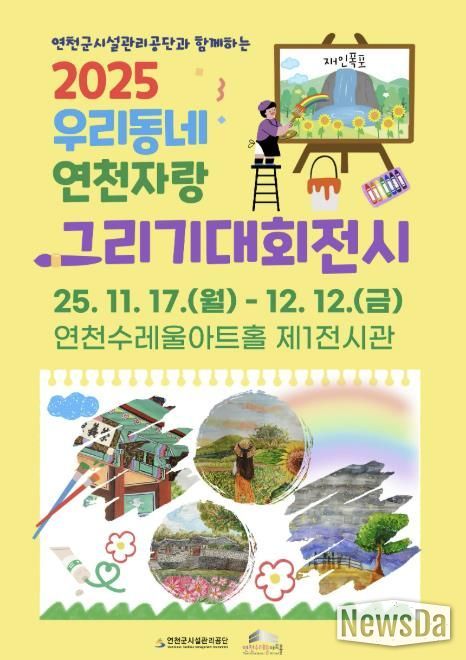 뉴스다 최광묵 기자 | 연천군시설관리공단은 오는 11월 17일부터 12월 12일까지 연천수레울아트홀 로비에서 제3회 '연천군시설관리공단과 함께하는, 우리동네 연천 자랑' 그리기 대회 전시회를 개최한다.