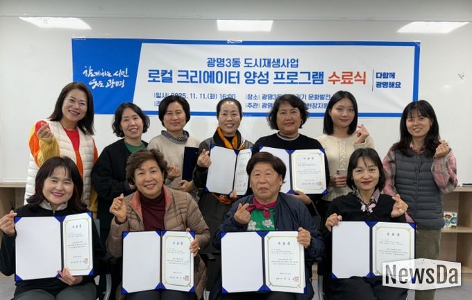 뉴스다 최광묵 기자 | 광명시는 지난 11일 광명3동 어울리기문화발전소에서 ‘광명3동 로컬 크리에이터 양성 프로그램’ 수료식을 개최했다.