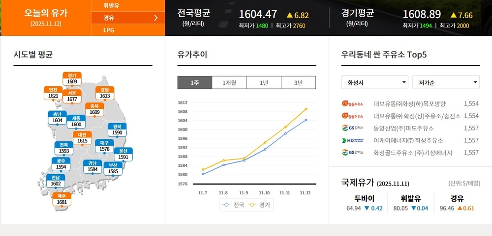 ▲화성시 경 유 제일 싼 주유소 1554원 대보유통(주)화성(상)주유소/충전소