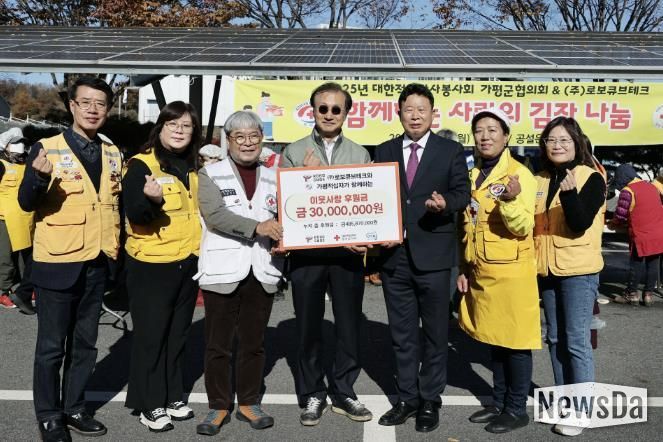뉴스다 최광묵 기자 | 대한적십자사봉사회 가평군지구협의회는 최근 로보큐브테크㈜가 대한적십자사에 기탁한 3,000만 원을 활용해 ‘희망풍차 사랑의 김장 나눔’ 행사를 열었다.