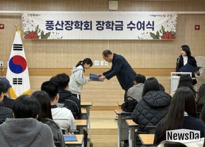 뉴스다 최광묵 기자 | 고양특례시 일산동구 풍산동은 지난 12일, 풍산장학회가 풍산동 행정복지센터에서 ‘2025년도 풍산장학회 장학금 수여식’을 개최했다고 밝혔다.