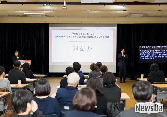 뉴스다 최광묵 기자 | (재)광명문화재단은 11월 12일 수요일 광명시민회관에서 ‘2025년 광명문화 정책포럼, 문화다양성 '모두가 즐기는 문화예술: 문화접근성과 공공의 역할'’을 성황리에 개최했다고 밝혔다.