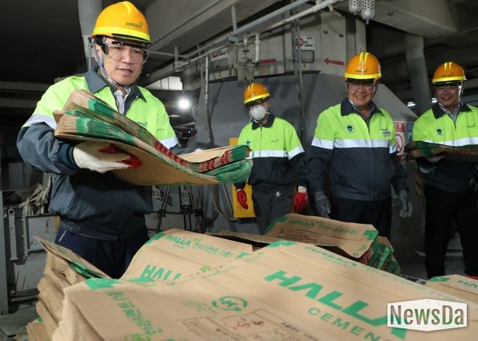 김 지사는 공장 도착 후 회의실에서 한라시멘트 및 도 관계자로부터 회사 현황과 CCU(Carbon Capture&Utilization, 탄소포집·활용) 메가프로젝트의 (총사업비 1,900억원) 추진 상황을 보고 받았다.