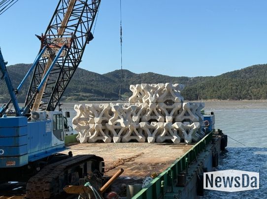 뉴스다 최광묵 기자 | 신안군은 다이아몬드 해역 내 수산자원 산란·서식장 조성 일환으로 지난 9월 인공어초 68개 설치에 이어, 11. 12일 수요일 올해 마지막 인공어초 123개를 추가로 투하했다.