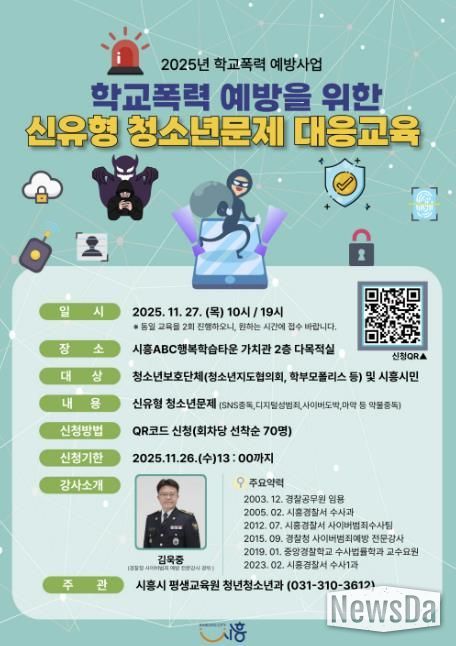 뉴스다 최광묵 기자 | 시흥시는 오는 11월 27일 시흥ABC행복학습타운 가치관 2층 다목적홀에서 ‘학교폭력 예방을 위한 신유형 청소년 문제 대응교육’을 진행한다.