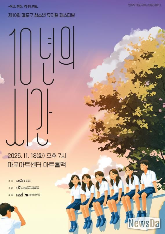뉴스다 최광묵 기자 | 마포구는 11월 18일 오후 7시, 마포아트센터 아트홀맥에서 ‘2025 제10회 마포구청소년뮤지컬페스티벌-10년의 시간’을 개최한다.