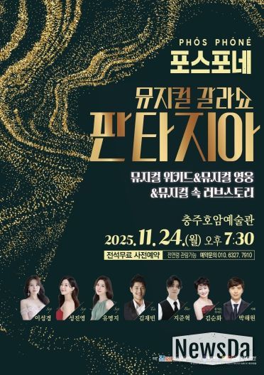뉴스다 최광묵 기자 | 충주시를 기반으로 활동하는 문화예술단체 포스포네(Phosphone)가 오는 11월 24일 오후 7시 30분, 호암예술관에서 〈포스포네 뮤지컬 갈라쇼 판타지아콘서트〉를 선보인다. 이번 공연은 충북문화재단의 2025년도 예술창작활동지원사업 선정작으로, 충주 시민들에게 뮤지컬 음악의 매력을 널리 알리고자 기획됐다.