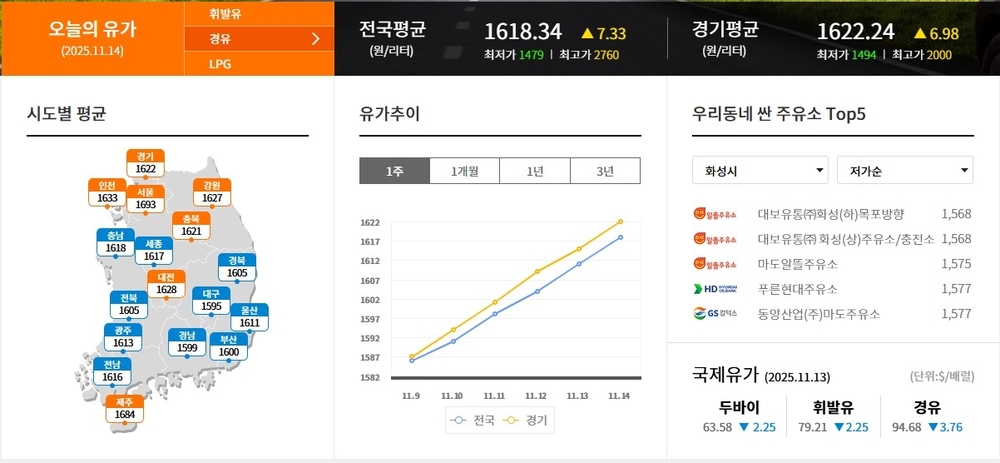 ▲화성시 경 유 제일 싼 주유소 1568원 대보유통(주)화성(상)주유소/충전소