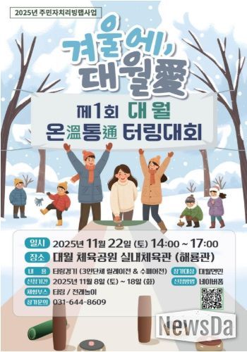 뉴스다 최광묵 기자 | 이천시 대월면 주민자치회는 오는 11월 22일 오후 2시부터 5시까지 대월체육공원 실내체육관에서 주민이 함께 즐기는 뉴스포츠 축제 '겨울에, 대월愛'- 제1회 온통 터링대회를 개최한다고 밝혔다.