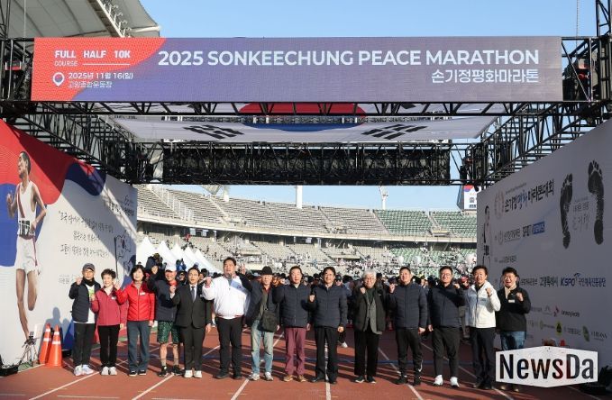 뉴스다 류대현 기자 | 16일 ‘2025 손기정 평화마라톤대회’가 열린 고양종합운동장, 이동환 고양특례시장은 환영사를 통해 “광복 80주년을 기념한 뜻깊은 대회, 도로 위를 맘껏 달리며 자유를 만끽하고 광복의 의미를 되새기길 바란다”고 말했다.