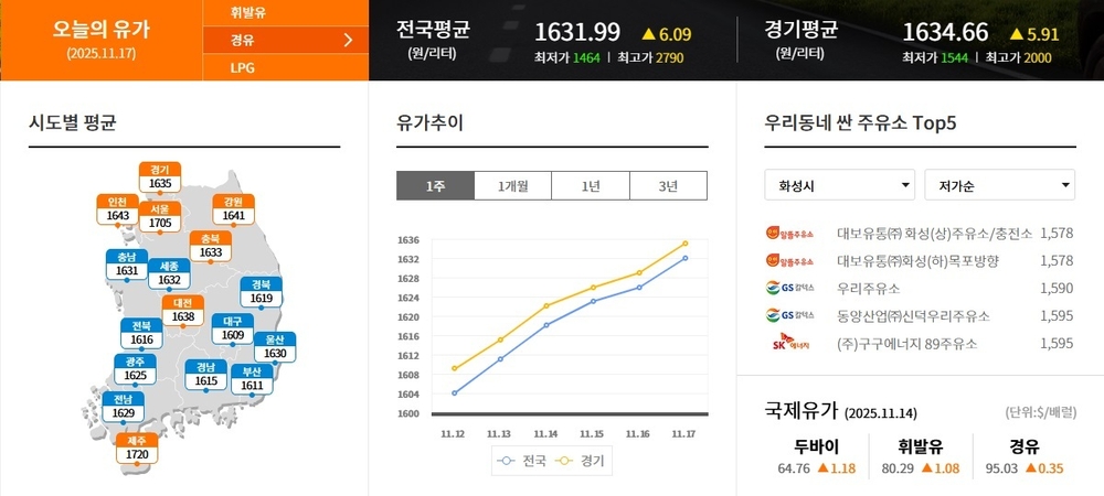 ▲화성시 경 유 제일 싼 주유소 1578원 대보유통(주)화성(상)주유소/충전소