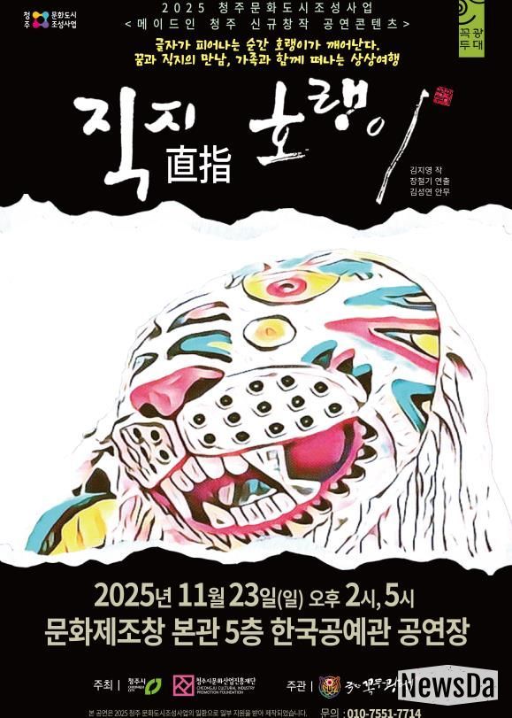 뉴스다 최광묵 기자 | 청주시와 청주시문화산업진흥재단은 오는 23일 오후 2시와 5시, 문화제조창 본관 5층 공연장에서 창작 탈놀이극 ‘직지호랭이’가 진행된다고 밝혔다.
