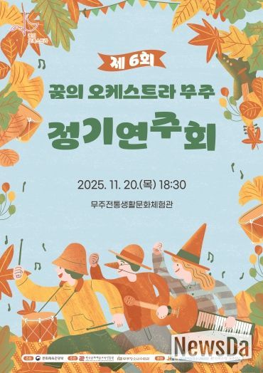 뉴스다 최광묵 기자 | 무주군은 오는 20일 오후 6시 30분 무주전통생활문화체험관에서 ‘제6회 아란 꿈의 오케스트라 정기연주회’를 개최한다고 밝혔다.
