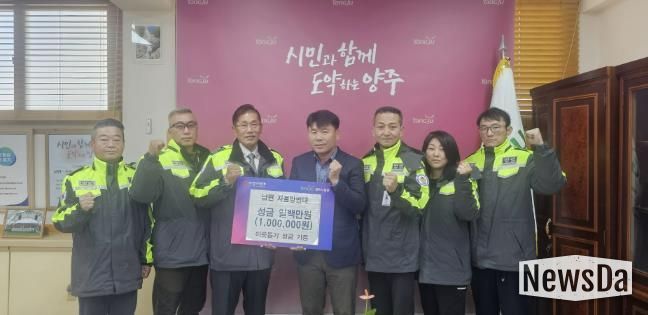 뉴스다 최광묵 기자 | 양주시 남면 자율방범대가 지난 15일, 남면 행정복지센터에 방문하여 지역 내 취약계층 지원을 위한 성금 100만 원을 기부했다.