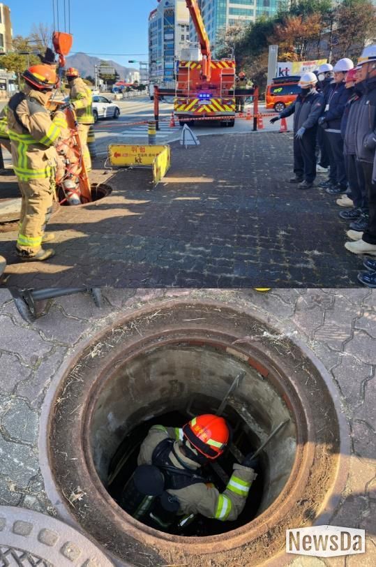 뉴스다 최광묵 기자 | 남양주소방서는 18일 KT남양주지점 인근 통신구에서 ‘밀폐공간 특별구조훈련’을 실시했다고 밝혔다.