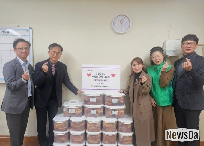 뉴스다 최광묵 기자 | 새마을문고 양주시지부는 11월 17일 덕현중학교를 방문해 지역 내 취약계층과 결식 우려 학생들을 위해 김치 200kg을 전달했다고 밝혔다.