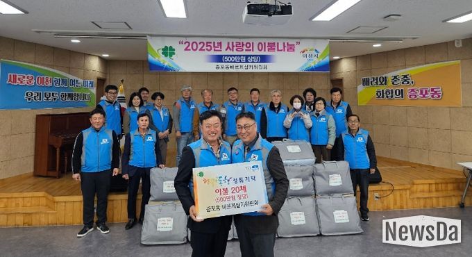 뉴스다 최광묵 기자 | 증포동 바르게살기위원회가 지난 11월 17일, 관내 취약계층을 위한 이불 20채(500만 원 상당)를 증포동행정복지센터에 기탁하며 ‘2025년 사랑의 이불 나눔’ 기탁식을 진행했다.