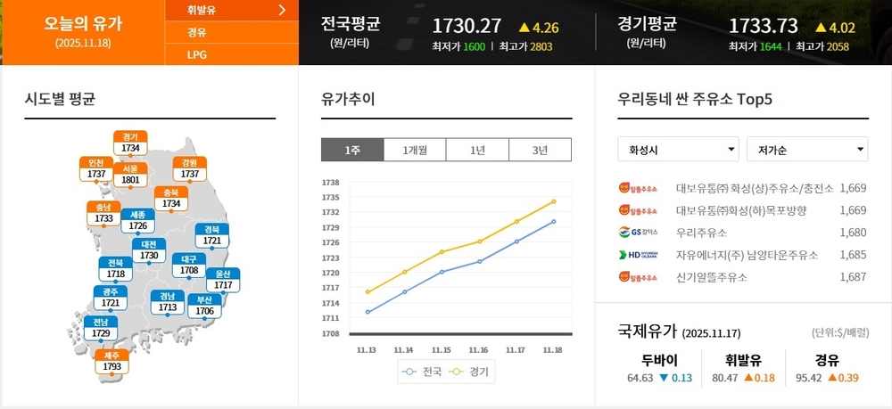 ▲화성시 휘발류 제일 싼 주유소 1669원 대보유통(주)화성(상)주유소/충전소