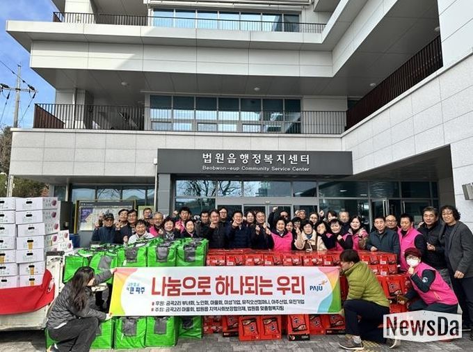 뉴스다 최광묵 기자 | 파주시 법원읍 금곡2리 마을회는 지역사회 나눔 확산을 위해 지난 17일, 법원읍 행정복지센터에서 관내 기업인 뮤직오션컴퍼니, 미성기업, 유진기업과 함께 참여한 겨울맞이 이웃 돕기 나눔 행사를 진행했다.